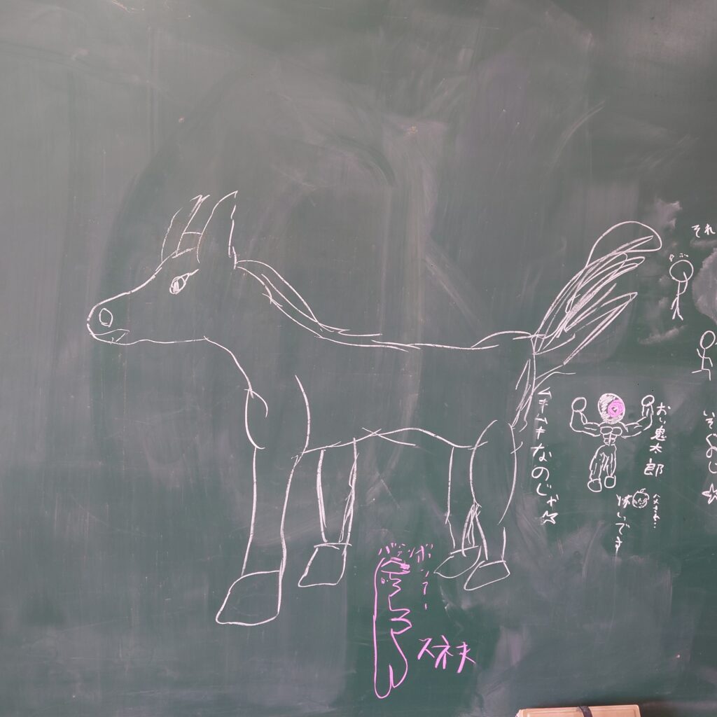 そして、一番大好きなのがこちら。もともと誰かが黒板にマジックでしちゃった落書きに追加したのが秀逸。